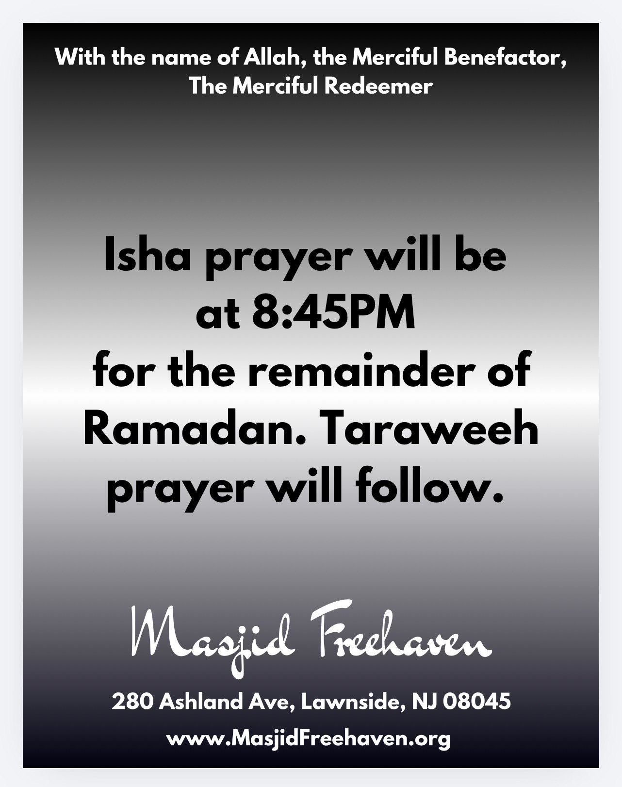 Welcome to a place where faith flourishes and friendships blossom. Welcome to Masjid Freehaven.